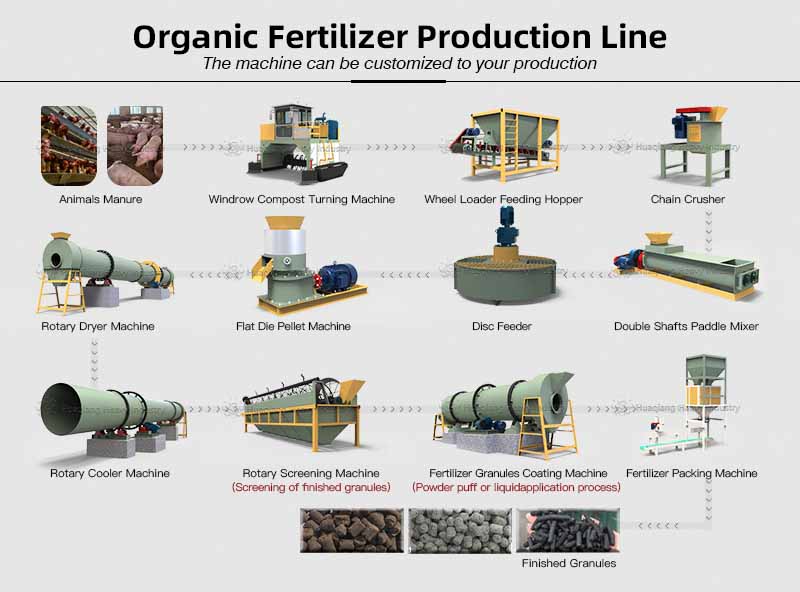 Investing in a small-scale organic fertilizer production line with a capacity of 2-5 tons/hour typically costs between 500,000 and 1.5 million yuan for equipment. Core equipment generally includes: a semi-wet material crusher, a hydraulic compost turner, a disc granulator, a drum screen, and a packaging machine. Currently, mature modular design solutions are available on the market. For example, Zhengzhou Huaqiang Heavy Industry offers customizable small-scale production lines, allowing investors to configure equipment in stages according to their financial situation, effectively alleviating initial investment pressure.
