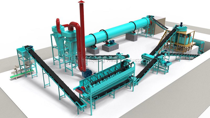 Small Line (10,000-30,000 tons/year): Uses rotary drum granulators with a diameter of less than 1.5 meters. Simplified configuration; drying and cooling can be completed in sections using the same drum. Suitable for county-level fertilizer plants or cooperatives.